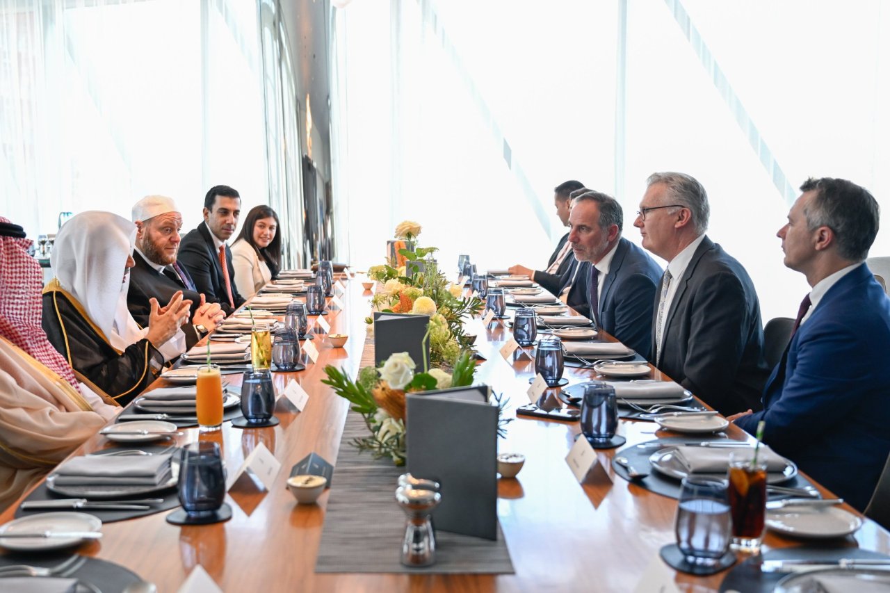احتفاءً بزيارة معالي الأمين العام، رئيسِ هيئة علماء المسلمين، فضيلةِ الشيخ د.محمد العيسى ، أقام مجلسُ الأئمة الفيدراليّ الأسترالي ممثّلاً بفضيلة رئيسِهِ الشيخ شادي السليمان، مأدبةَ غداءٍ، بحضور معالي وزير الشؤون الداخلية الفيدرالي، وزعيم الأغلبية في مجلس النُّوَّاب، السيد توني بيرك، ومعالي وزير التعليم الفيدرالي، السيد جيسون كلير، ومعالي وزير خدمة العملاء والحكومة الرقمية وخدمات الطوارئ والشَّباب، السيد جهاد ديب، ومعالي وزيرة العلاقات الصناعية الفيدرالية، السيدة صوفي كوتسيس، وعددٍ من المسؤولين في الحكومة والبرلمان، والقياداتِ الإسلامية.