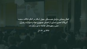 اقاي دكتر شیخ محمد العيسى، در سخنرانی‌ای که از طریق ارتباط تصویری برای میهمانان سازمان همبستگی جهان اسلام در مراسم افطار رمضانی ایراد کرد — مراسمی که برای دومین سال پیاپی و برای نخستین بار در تاریخ کنگره ایالات متحده آمریکا برگزار شده است